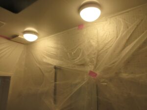 まずは浴室内を完璧に養生しました。