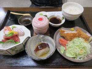 マサキ君のヒレカツ三の膳♪ サービスでデザートにアイスクリームとホットコーヒーを頂きました🍨☕