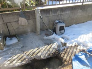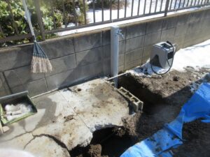 コンクリートを壊すと手間だし費用も掛かるので、お客様と相談して少し横にズラして新規に水栓柱を設置しました。