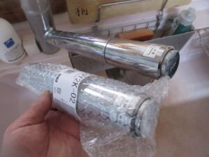 漏水しているとの事でタカギ社製のキッチン蛇口一体型浄水器交換を施工しました。
