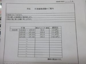 タイミング良く?? 朝7:30にオーダーを頂いた近所のお客様へは、在庫してあった値上げ前の価格で販売させて頂きました。 54㍑だったので午後のオーダーだったら+¥2,500-でしたよ~と話したら…